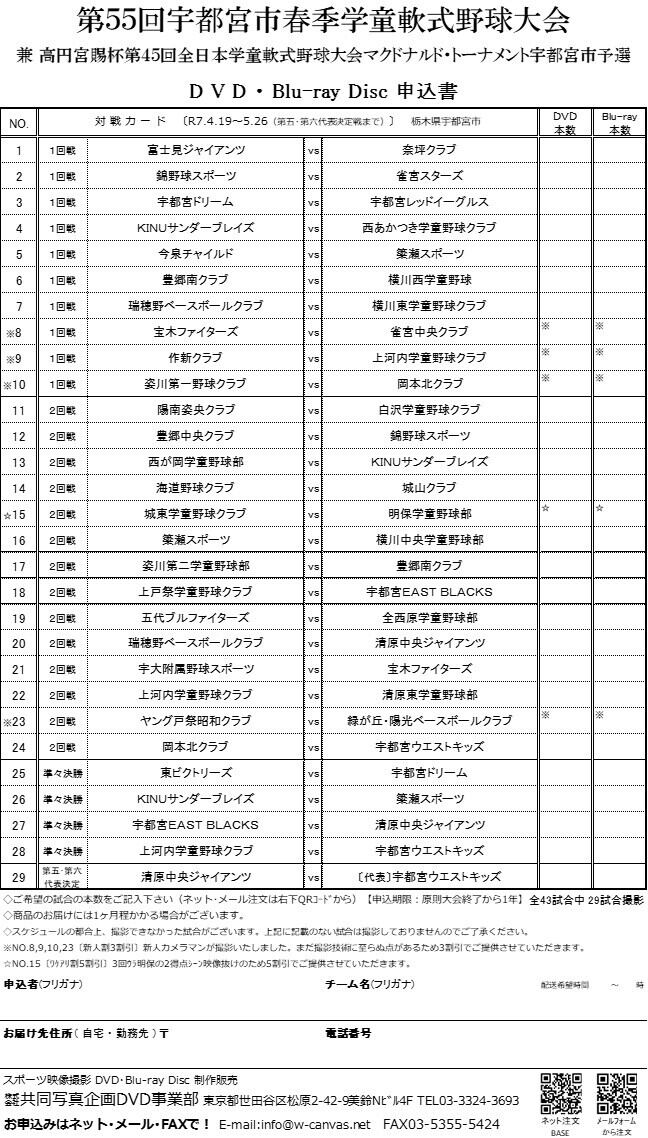 申込書に記載のない試合は撮影しておりませんのでご了承ください。