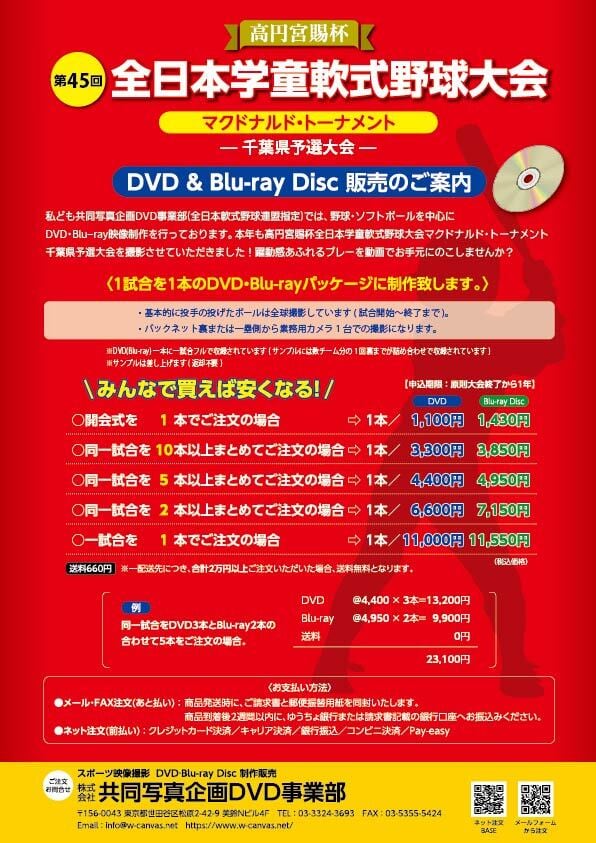 【DVD1本】高円宮賜杯第45回全日本学童軟式野球大会マクドナルド・トーナメント千葉県予選大会