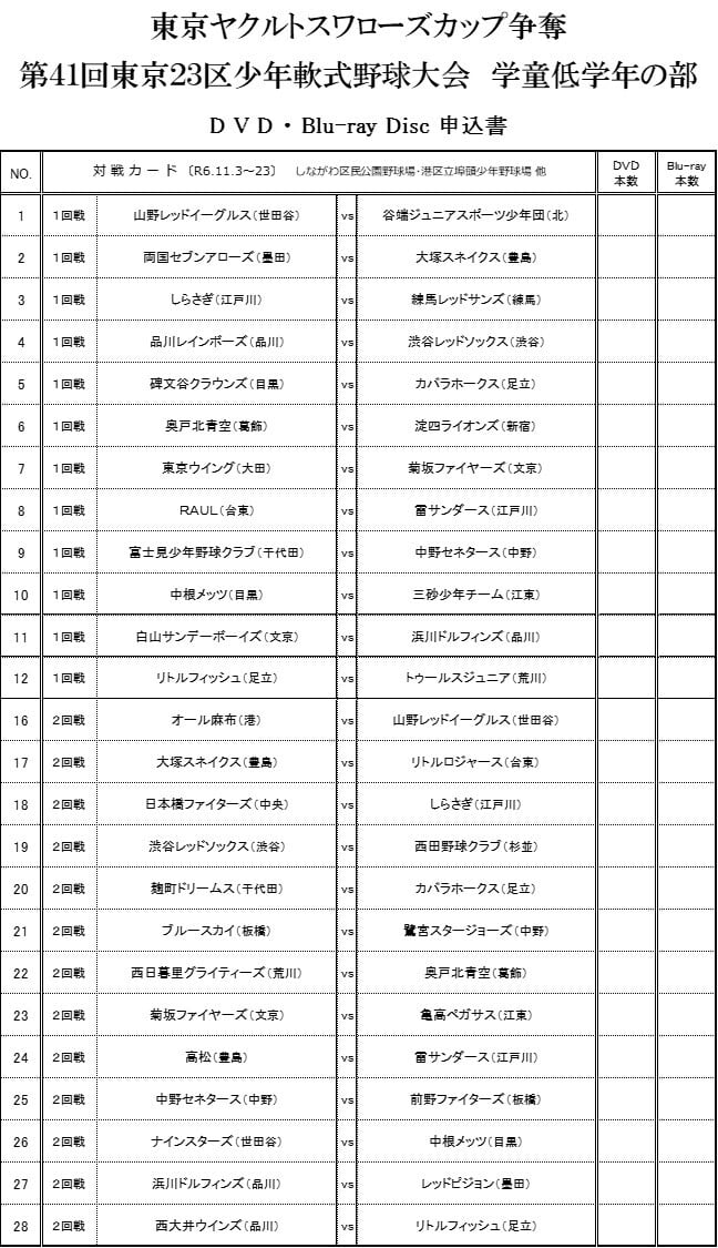 【DVD2本+BD4本の6本まとめ】東京ヤクルトスワローズカップ争奪 第41回東京23区少年軟式野球大会 学童低学年の部