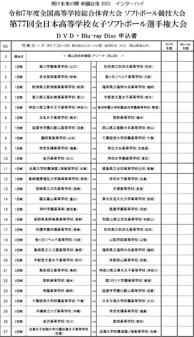 令和7年度全国高等学校総合体育大会 第77回全日本高等学校女子ソフトボール選手権大会Blu-ray Disc
