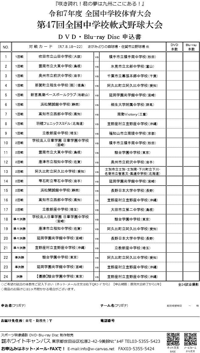 【Blu-ray1本】令和7年度全国中学校体育大会 第47回全国中学校軟式野球大会