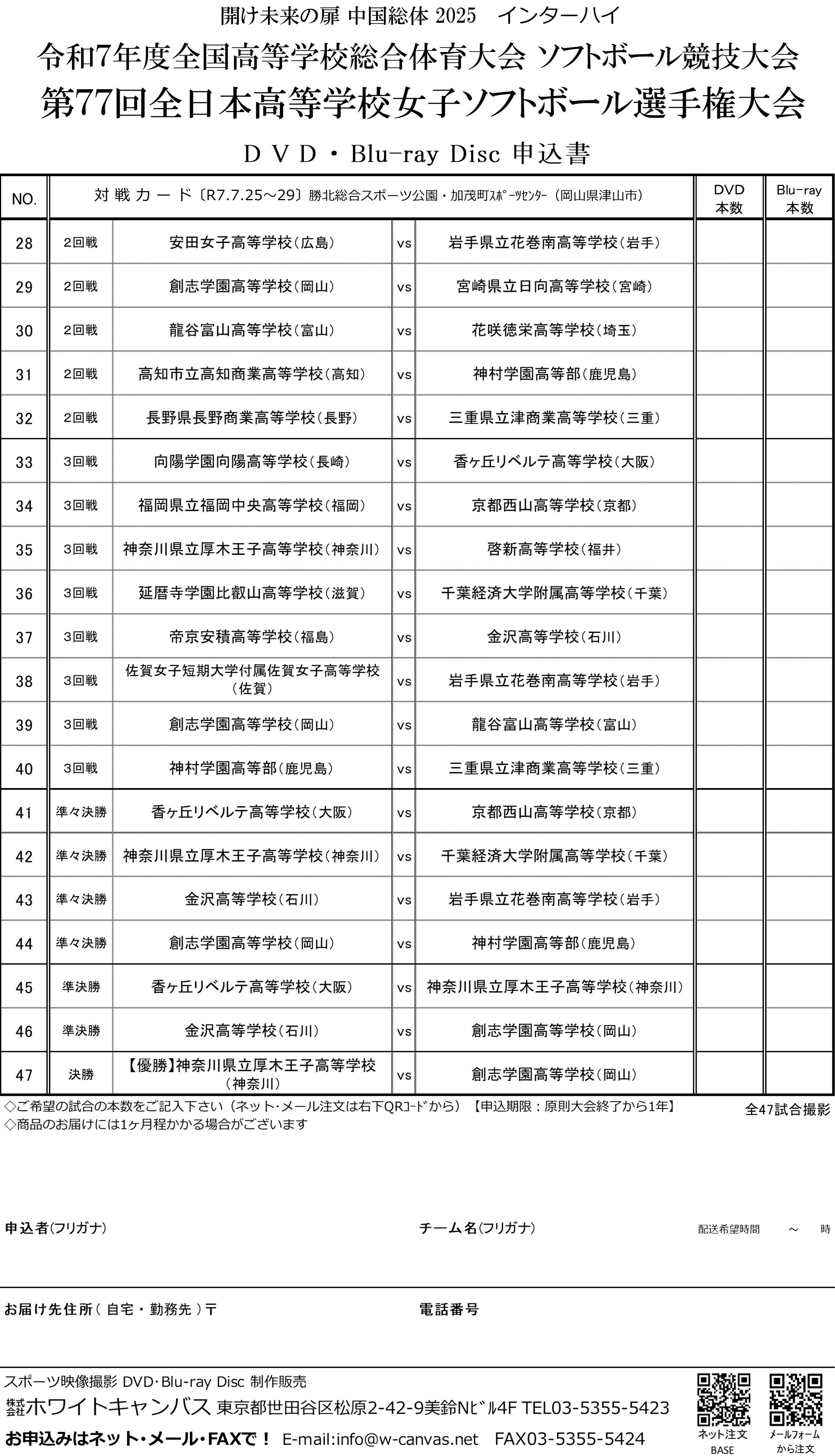 令和7年度全国高等学校総合体育大会 第77回全日本高等学校女子ソフトボール選手権大会DVD