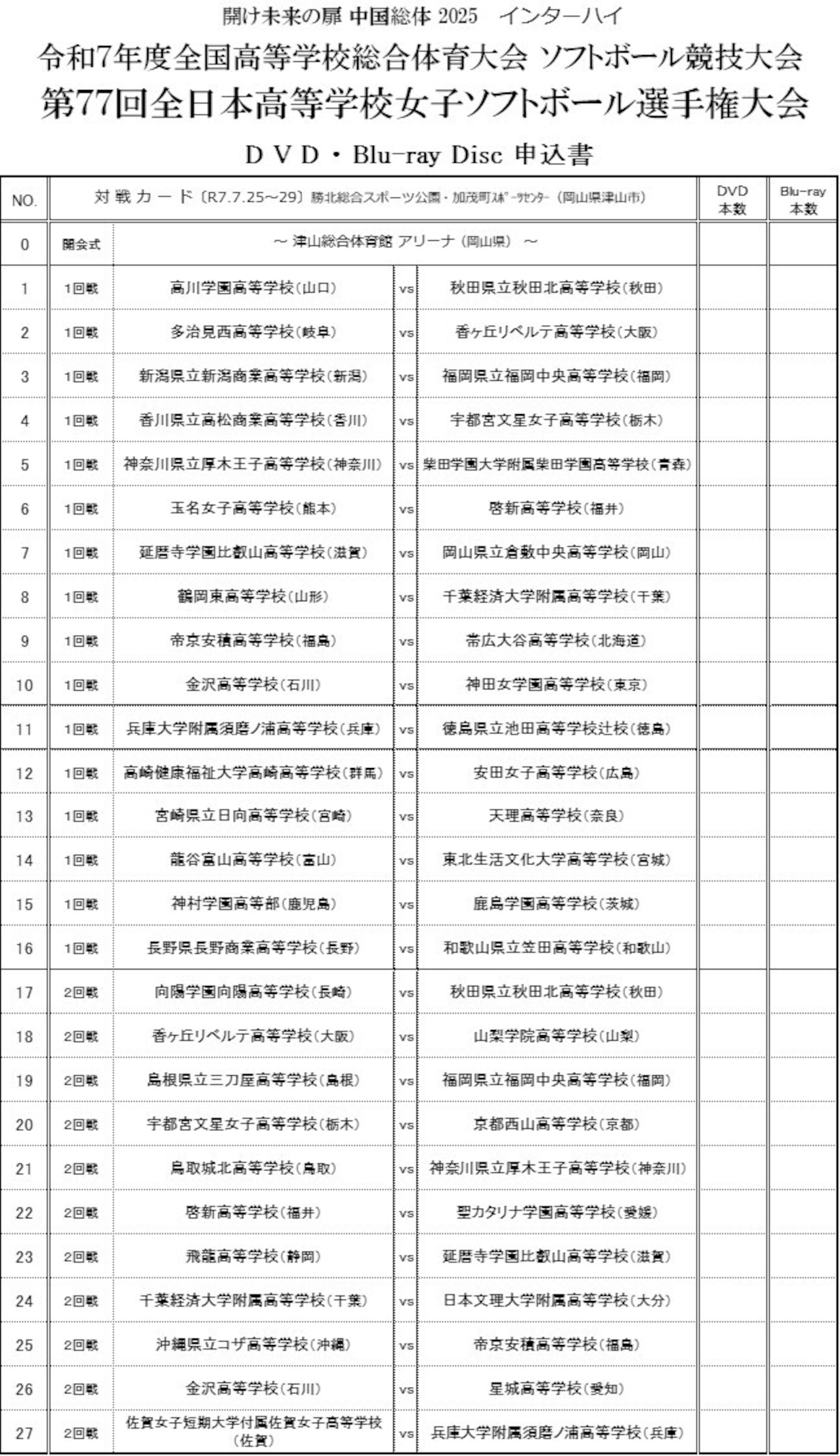 令和7年度全国高等学校総合体育大会 第77回全日本高等学校女子ソフトボール選手権大会DVD