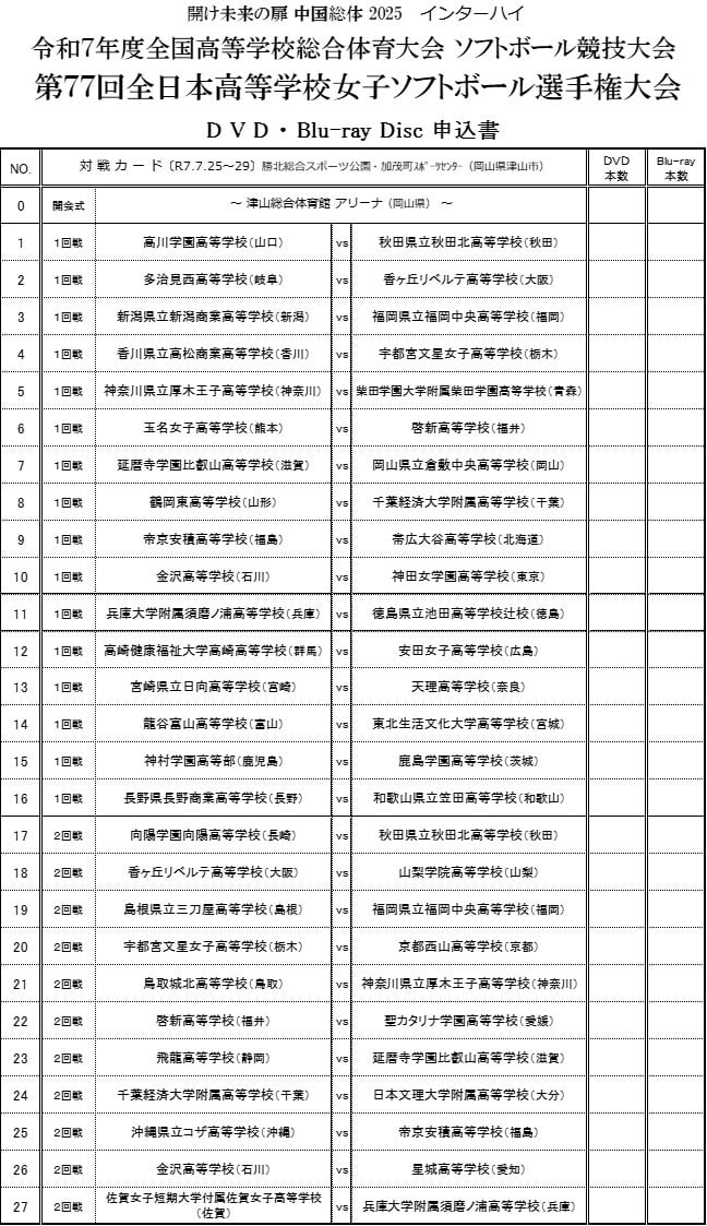 令和7年度全国高等学校総合体育大会 第77回全日本高等学校女子ソフトボール選手権大会DVD