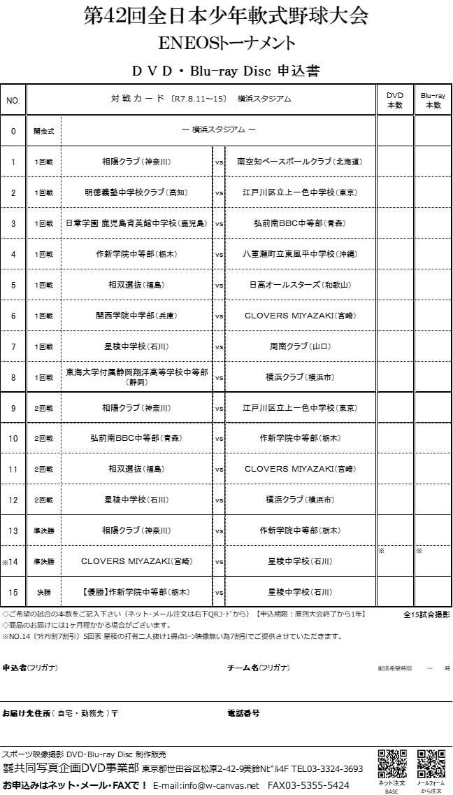 第42回全日本少年軟式野球大会ENEOSトーナメントDVD