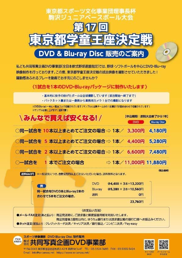 東京都スポーツ文化事業団理事長杯駒沢ジュニアベースボール大会第17回東京都学童王座決定戦DVD