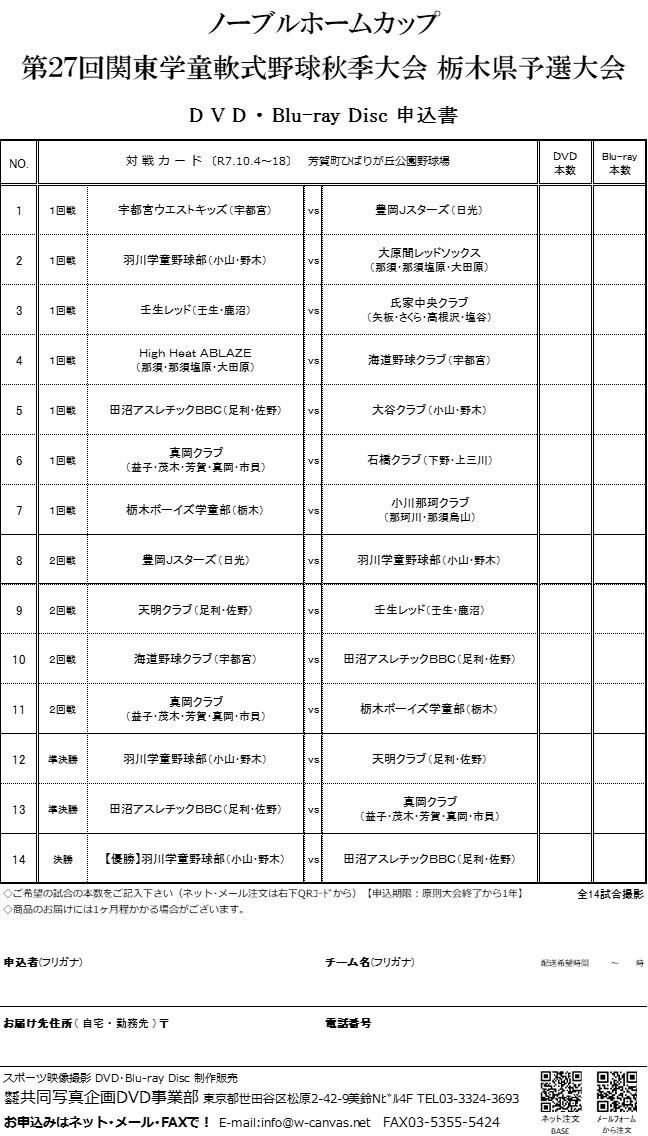 ノーブルホームカップ第27回関東学童軟式野球秋季大会栃木県予選大会DVD