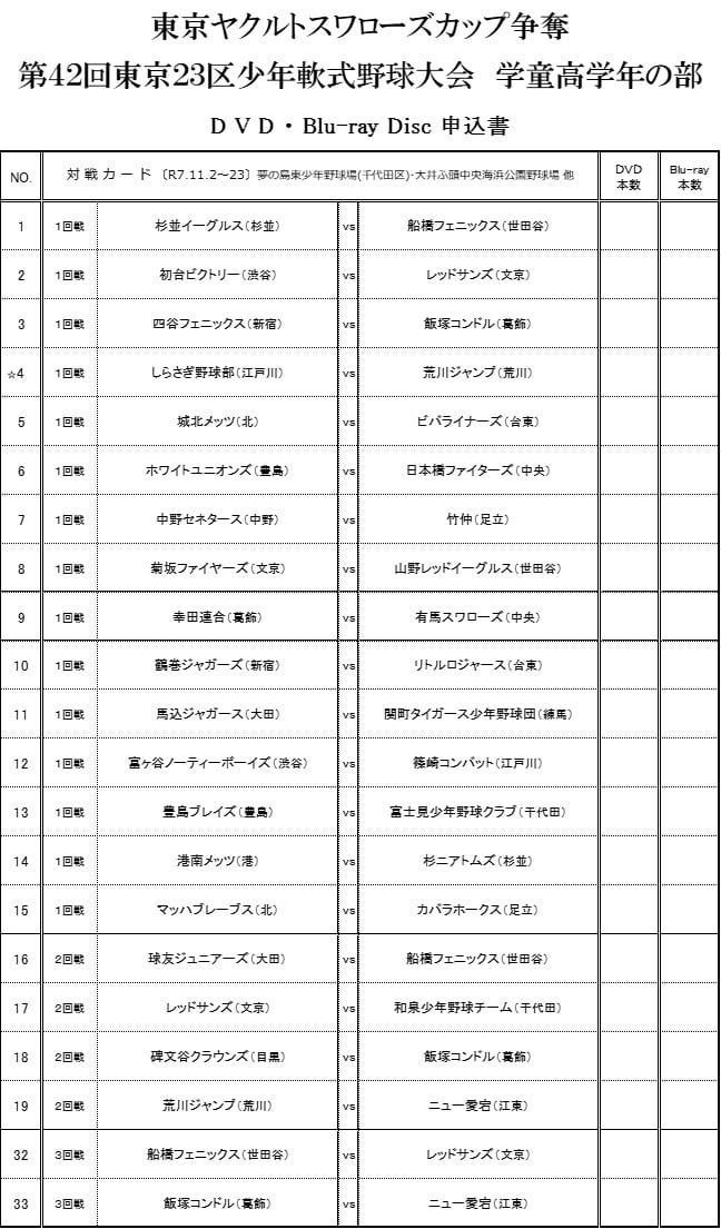 東京ヤクルトスワローズカップ争奪 第42回東京23区少年軟式野球大会 学童高学年の部DVD