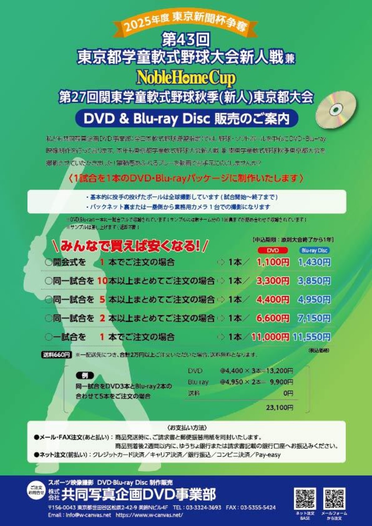 【DVD1本+BD2本の3本まとめ】2025年度東京新聞杯争奪第43回東京都学童軟式野球大会新人戦 兼 ノーブルホームカップ第27回関東学童軟式野球秋季(新人)東京都大会