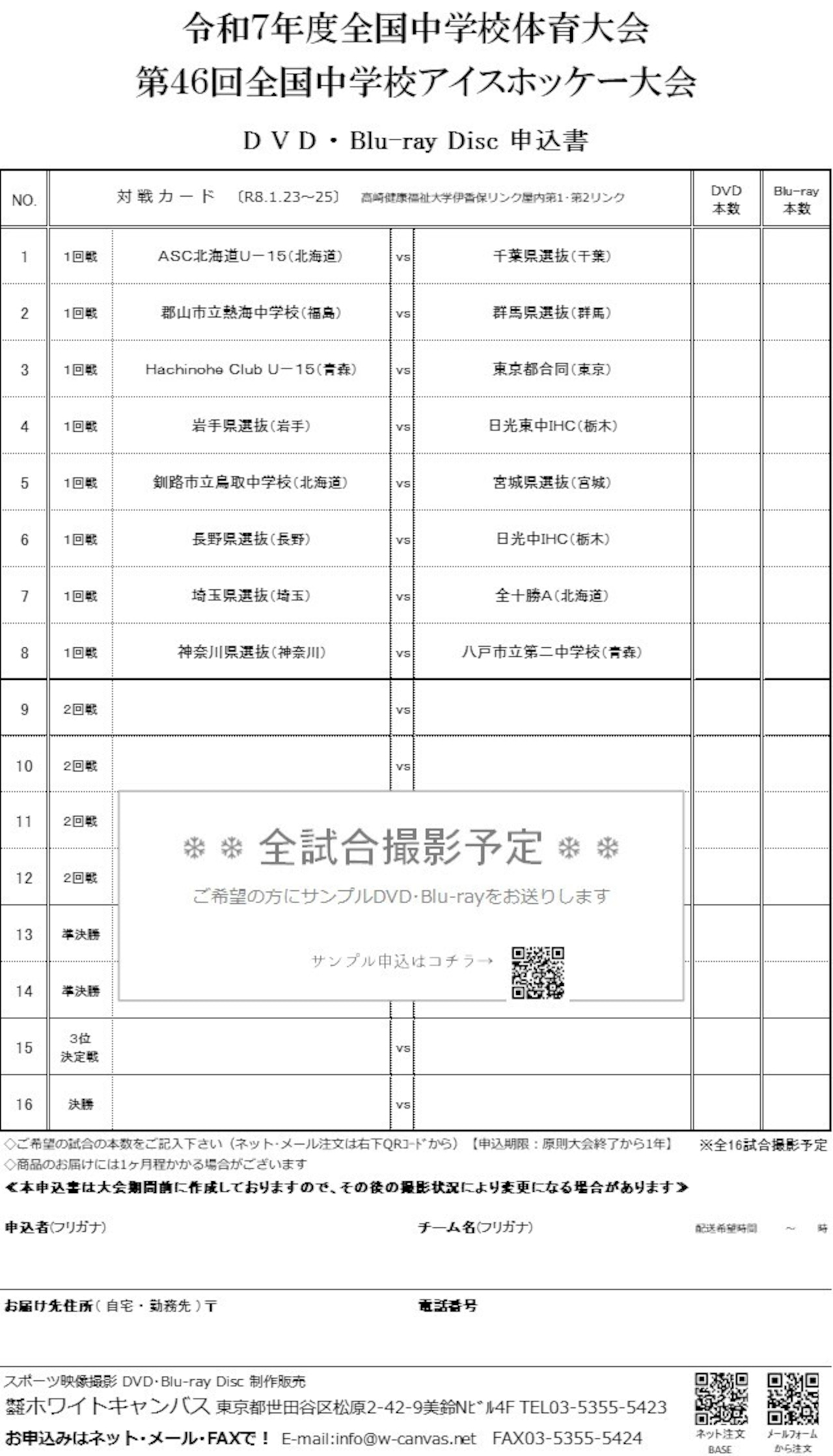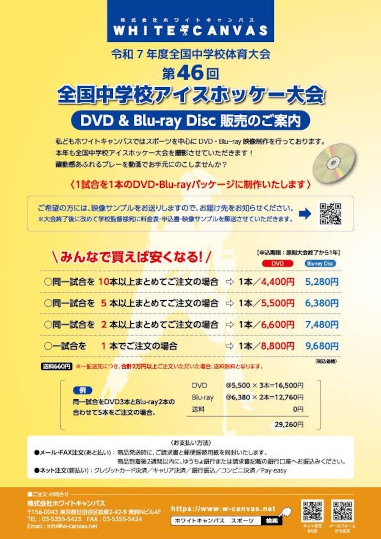 令和7年度全国中学校体育大会 第46回全国中学校アイスホッケー大会DVD