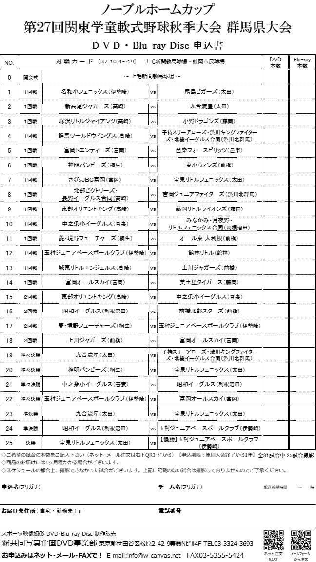 【DVD7本+BD1本の8本まとめ】ノーブルホームカップ第27回関東学童軟式野球秋季大会群馬県大会