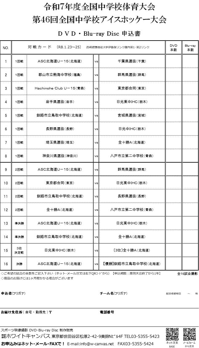令和7年度全国中学校体育大会 第46回全国中学校アイスホッケー大会DVD