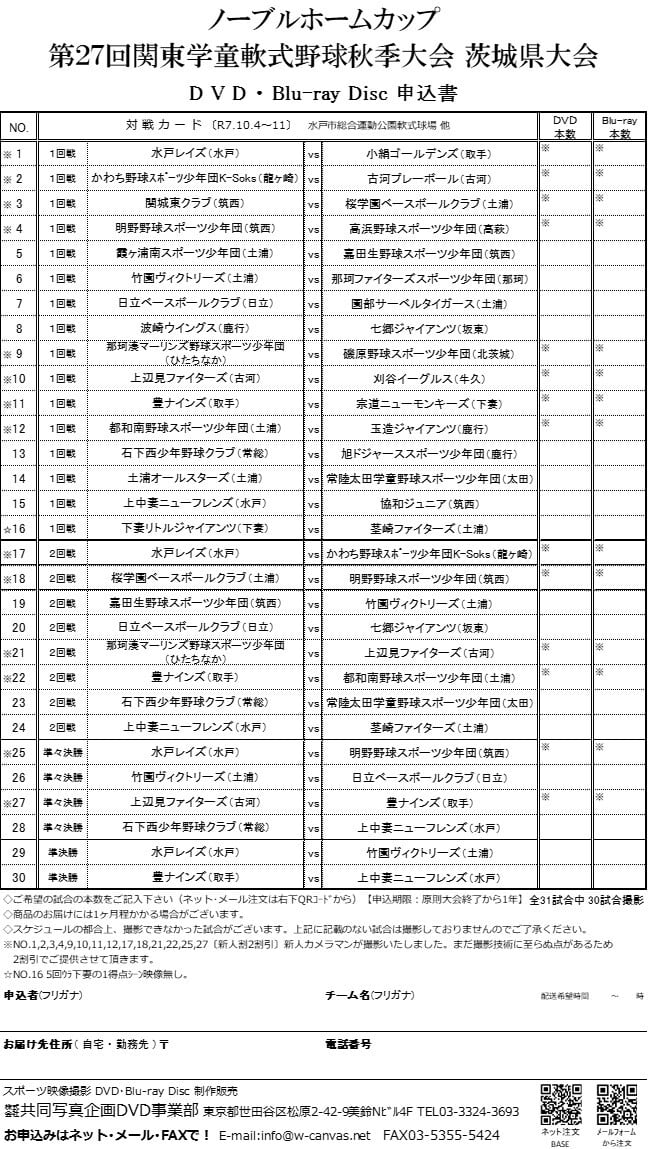 申込書に記載のない試合は撮影しておりませんのでご了承ください。