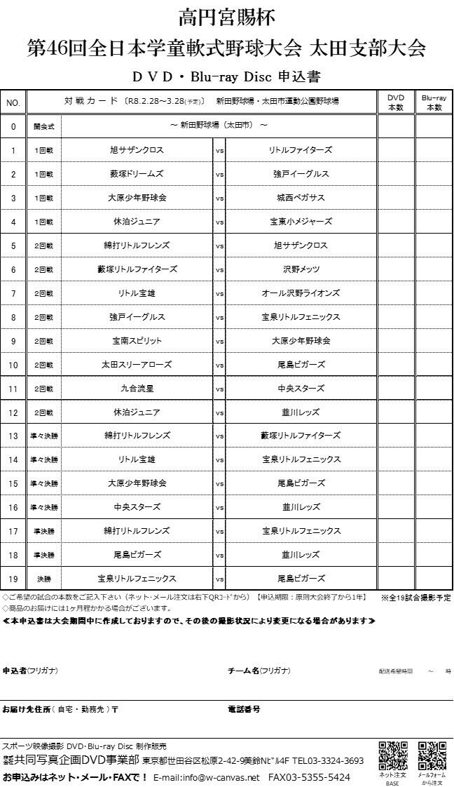 高円宮賜杯第46回全日本学童軟式野球大会太田支部大会DVD