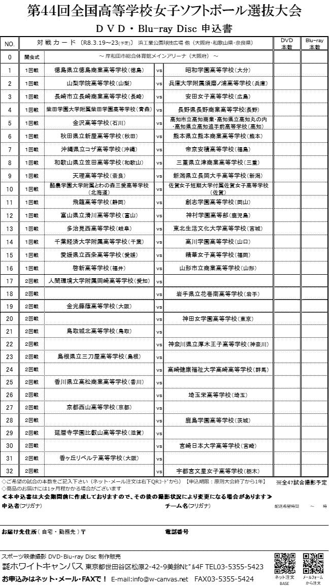 【開会式Blu-ray1本】第44回全国高等学校女子ソフトボール選抜大会