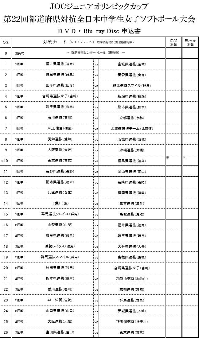 【DVD5本+BD5本の10本まとめ】JOCジュニアオリンピックカップ第22回都道府県対抗全日本中学生女子ソフトボール大会
