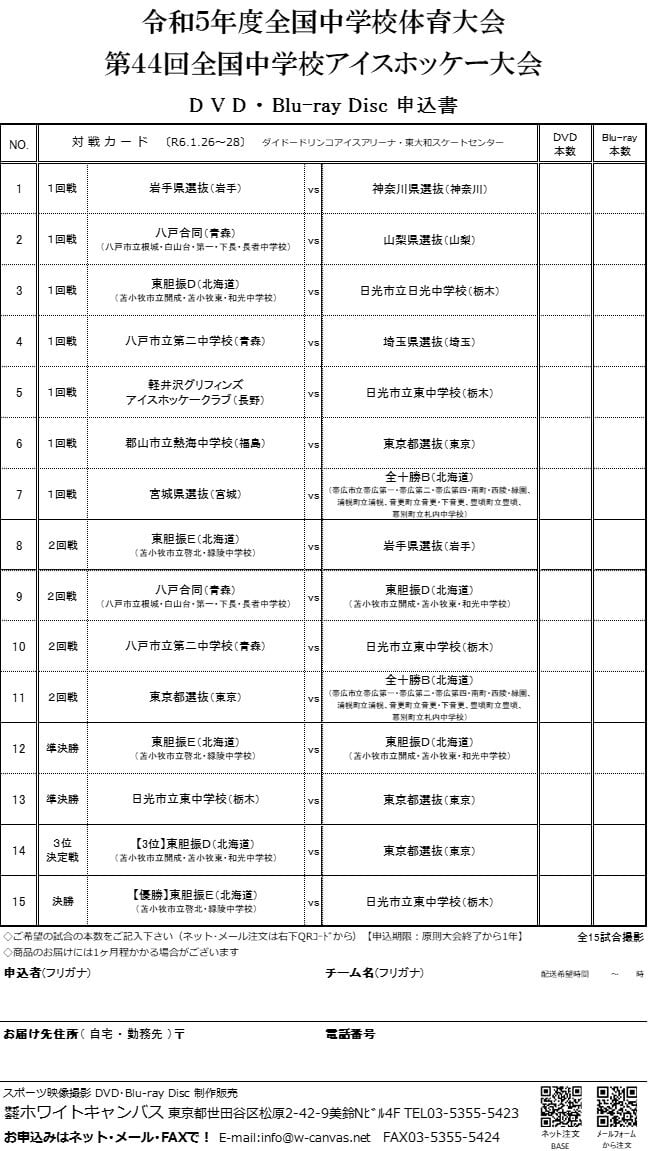 令和5年度全国中学校体育大会 第44回全国中学校アイスホッケー大会DVD
