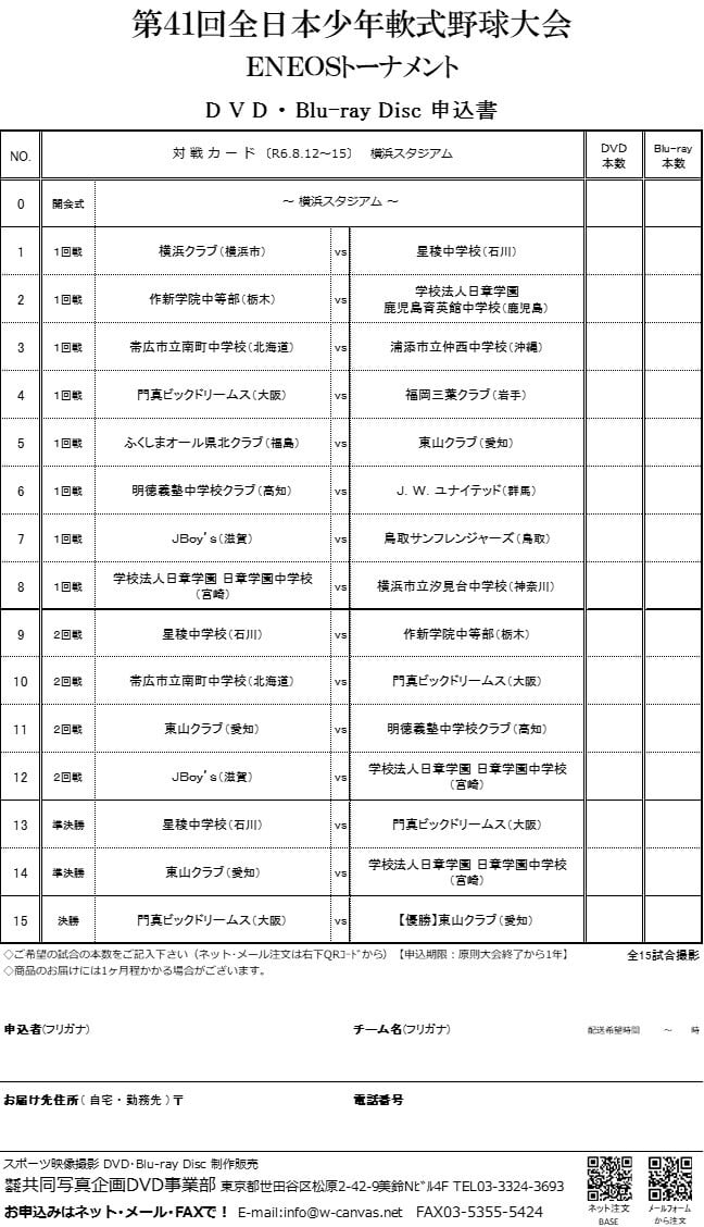 第41回全日本少年軟式野球大会ENEOSトーナメントDVD