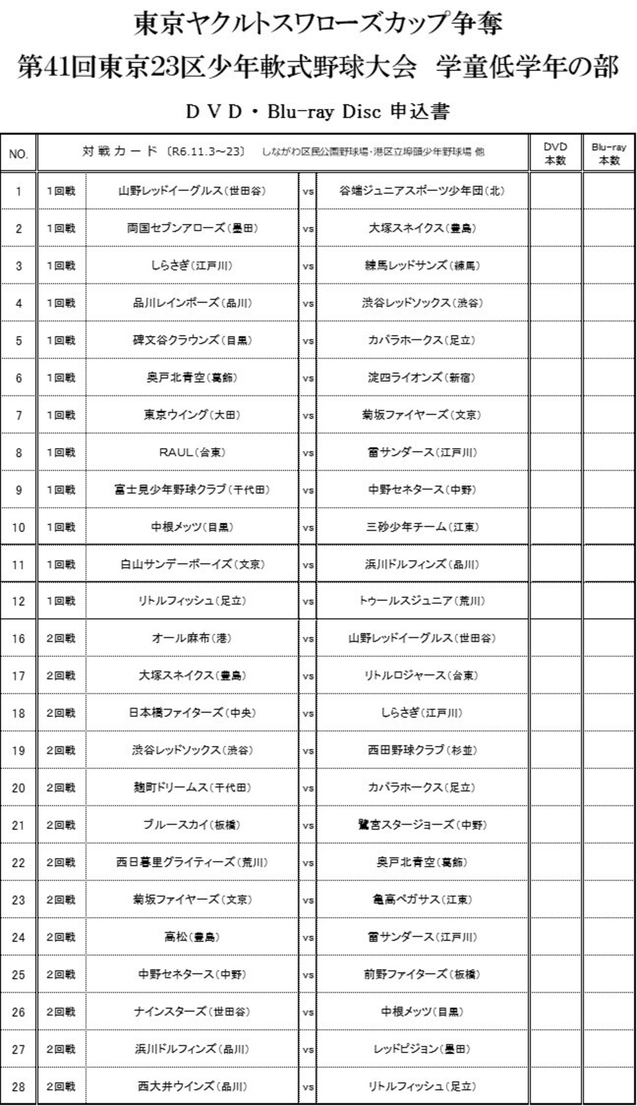東京ヤクルトスワローズカップ争奪 第41回東京23区少年軟式野球大会 学童低学年の部DVD