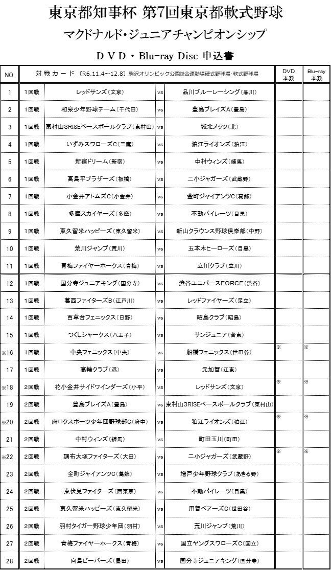 東京都知事杯第7回東京都軟式野球マクドナルド・ジュニアチャンピオンシップDVD